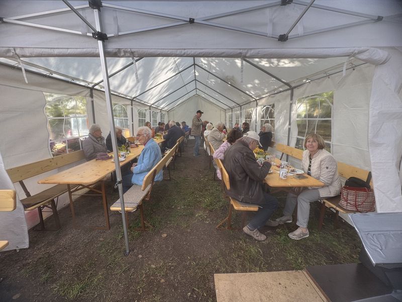 Am Morgen des Festtages mussten noch die Restarbeiten erledigt werden, aber alles war gut organisiert und so konnte unser 2. Vorstand Manfred Maier am 28.09.2025 ab 11:30 Uhr die ersten Gäste begrüßen. Diese konnten von der große Auswahl der Speisen die unsere Vereinsmitgliedern zubereitet hatten, genießen. Am Nachmittag gab es noch „Kaffee und Kuchen“. Hier konnten sich unsere Gäste von der reichhaltigen Kuchentheke die besten Torten, Kuchen und andere Leckereien auswählen und mit Freunden, oder Bekannten bei guten Gesprächen verspeisen.